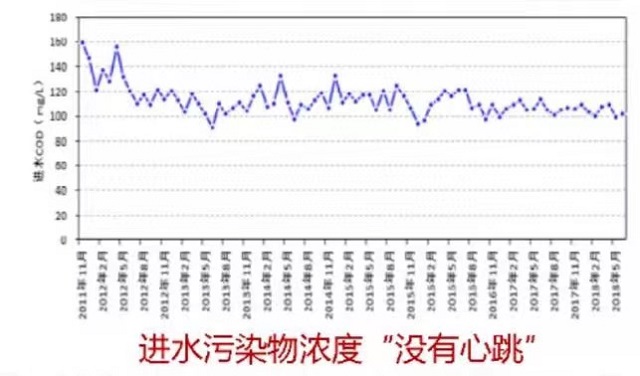 “污水處理廠(chǎng)的進(jìn)水濃度也應該進(jìn)行調查,因為從這個(gè)指標入手,我們可以初步判定整個(gè)污水收集系統外水入滲的程度,還要包括旱天、雨天水量變化和溢流量調查?!碧平▏瑫r(shí)以圖片舉例,如果污水處理廠(chǎng)的進(jìn)水污染物濃度沒(méi)有“心跳”,進(jìn)水水質(zhì)基本恒定在一條直線(xiàn)上,就可以判斷出它的進(jìn)水濃度有問(wèn)題。