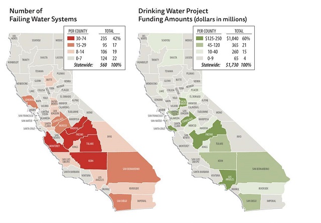 據加州水資源控制委員會(huì )調查透露,截至2021年12月,全州已有超過(guò)370套供水系統出現問(wèn)題,導致水質(zhì)不達標,其中三分之二的供水系統卻仍在為貧弱社區供水,受影響居民超過(guò)92萬(wàn)人。