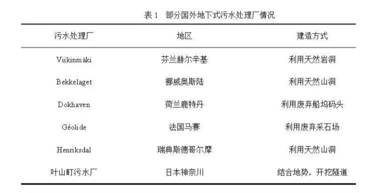 在人口密度更高,城市用地更為緊張,社會(huì )經(jīng)濟更加發(fā)達的一些歐美、日本等國家(圖5),地下式污水處理廠(chǎng)并非遍地開(kāi)花,幾乎是鳳毛麟角。此外,國外少有的一些地下式污水處理廠(chǎng)案例(表1)中,其建設選址、緣由也非盲目跟風(fēng),主要是充分利用天然山洞、廢棄地下建筑等地形順勢而為,因此而大大減少了建設所需的工程量??梢?jiàn),地下污水處理廠(chǎng)的建設應因地制宜,不應盲目跟風(fēng)。