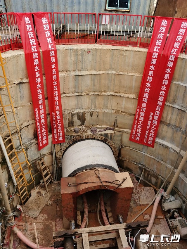 9月7日,在三湘南湖大市場(chǎng)湘湖路,一座8米深的工作井內,一臺直徑2.4米的頂管機刀盤(pán)緩慢轉動(dòng)起來(lái),由長(cháng)沙市公建中心投資建設、中建五局總承包公司負責施工的紅旗渠水系排水改造項目實(shí)現頂管始發(fā),這標志著(zhù)該項目正式進(jìn)入主體施工階段。項目建成后,長(cháng)沙老城區雨污合流制溢流污染將得到有效控制,城市排水系統防澇排漬能力將增強,以進(jìn)一步保護瀏陽(yáng)河水質(zhì),為長(cháng)沙市民創(chuàng )造更好、更安全的生活環(huán)境。