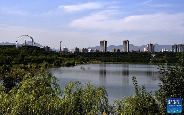 這是利用阜石路廢棄的大型砂石坑建設的西郊雨洪調蓄工程,蓄水量可達680萬(wàn)立方米(9月8日攝)。