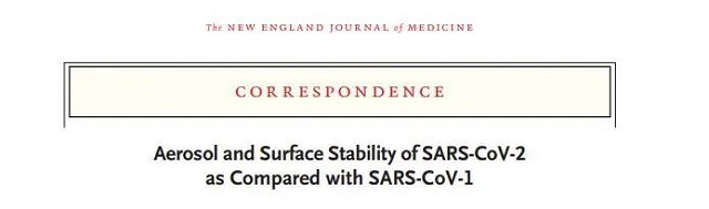 《新英格蘭醫學(xué)雜志》上發(fā)表的一項最新研究顯示,新冠病毒可以懸浮在小于5微米的飛沫中(即氣溶膠)約半小時(shí),然后落下來(lái)并停留在物體表面長(cháng)達數小時(shí)。