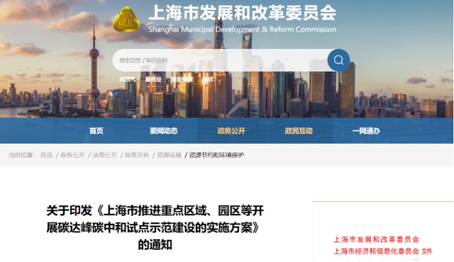 上海市推進(jìn)重點(diǎn)區域、園區等開(kāi)展碳達峰碳中和試點(diǎn)示范建設的實(shí)施方案