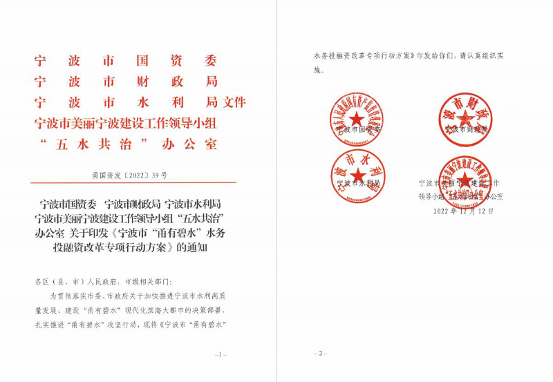為加快推進(jìn)寧波市水利高質(zhì)量發(fā)展、建設“甬有碧水”現代化濱海大都市,市國資委、市水利局、市財政局、市“五水共治”辦等四部門(mén)聯(lián)合出臺《寧波市“甬有碧水”水務(wù)投融資改革專(zhuān)項行動(dòng)方案》(以下稱(chēng)《行動(dòng)方案》)。