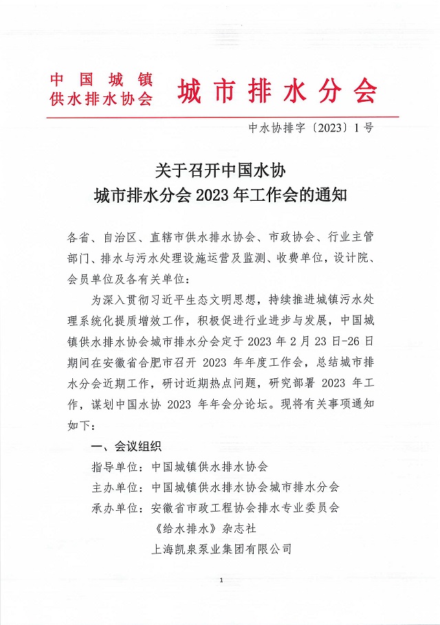 關(guān)于召開(kāi)中國水協(xié)城市排水分會(huì )2023年工作會(huì )的通知