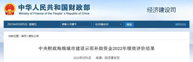 中央財政海綿城市建設示范補助資金2022年績(jì)效評價(jià)結果