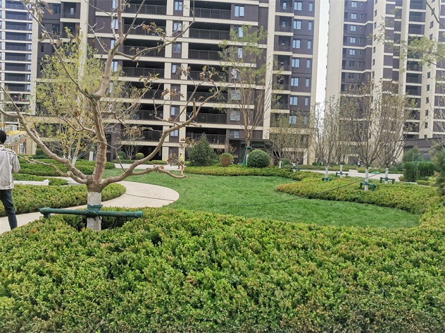 綠城集團天津桂語(yǔ)聽(tīng)瀾項目位于空港經(jīng)濟區環(huán)河東路與東八道交口處,項目類(lèi)型為住宅小區,可用地面積61808.8平方米,通過(guò)設置下凹綠地、透水鋪裝等海綿設施,同樣實(shí)現了年徑流總量控制率≥75%的目標。該項目道路均為平緣石,硬質(zhì)鋪裝豎向高于周邊綠地,雨水自然找坡匯流到下凹綠地內。在滿(mǎn)足排水要求的同時(shí),該項目也強調與景觀(guān)緊密結合,喬木種植區局部下凹,景觀(guān)休憩區整體下凹,微地形起伏環(huán)繞,在有限的用地空間內平衡功能與景觀(guān)需求,實(shí)現土地的高效利用,既能保護景觀(guān)植物,又能創(chuàng )造更多的層次和調蓄空間,豐富景觀(guān)效果,實(shí)現人與自然和諧共處。