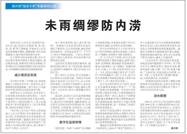 數字化監測澇情 居民區里一塊塊“小海綿”可以緩解小范圍的澇情,而要想改變整個(gè)紹興區域的排水難題,必須要有全局性視野。
