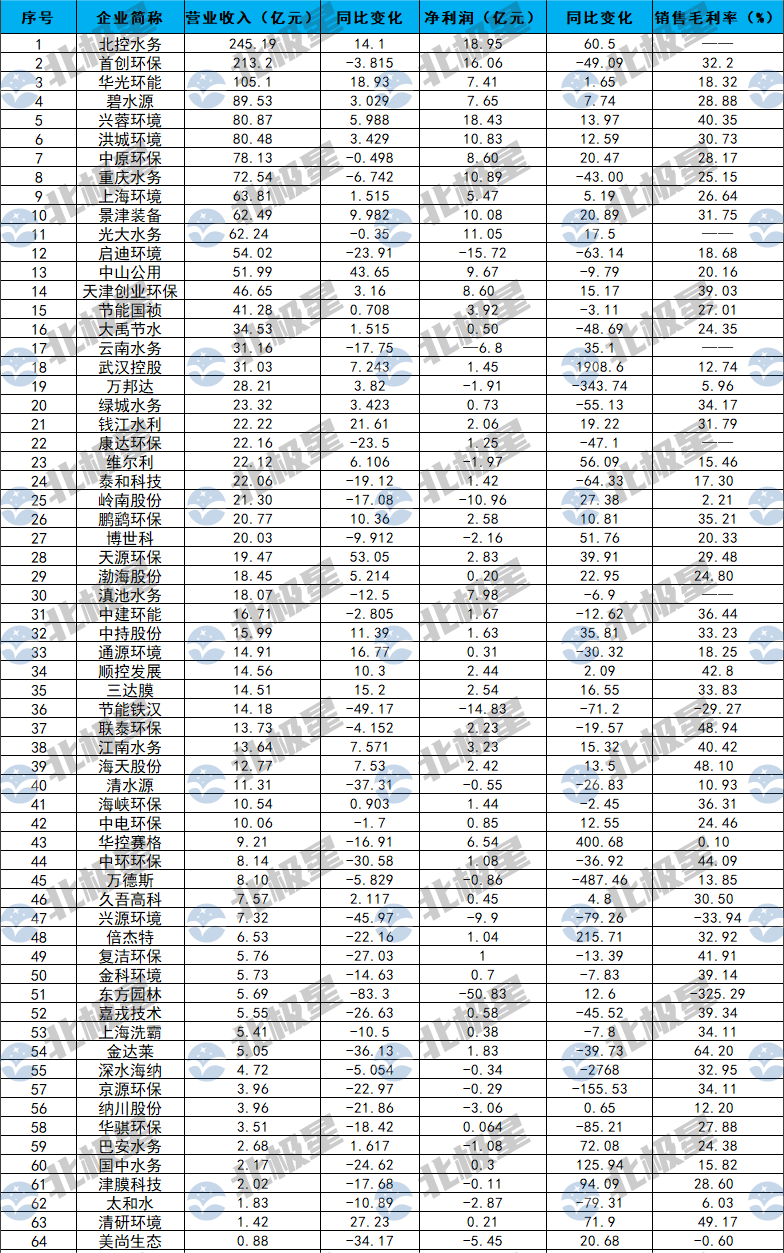 64家水務(wù)上市公司2023年業(yè)績(jì)(以營(yíng)收排序)