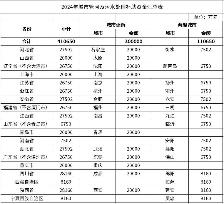 根據《城市管網(wǎng)及污水處理補助資金管理辦法》(財建〔2021〕144號)、《財政部住房城鄉建設部關(guān)于<城市管網(wǎng)及污水處理補助資金管理辦法>的補充通知》(財建〔2024〕139號)規定及有關(guān)工作安排,經(jīng)商住房城鄉建設部、水利部,現就有關(guān)事項通知如下: