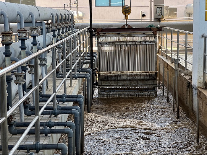 占地僅需傳統工藝的一半,污泥轉化為內碳源減少排放 在張家港第三污水處理廠(chǎng)廠(chǎng)區,記者跟隨專(zhuān)家組看到了納米平板陶瓷膜的“真容”:只見(jiàn)幾十個(gè)由一片片白板模樣的陶瓷膜片堆疊形成的膜組件通過(guò)密密麻麻的管道連接成了一體,浸沒(méi)在反應池中。