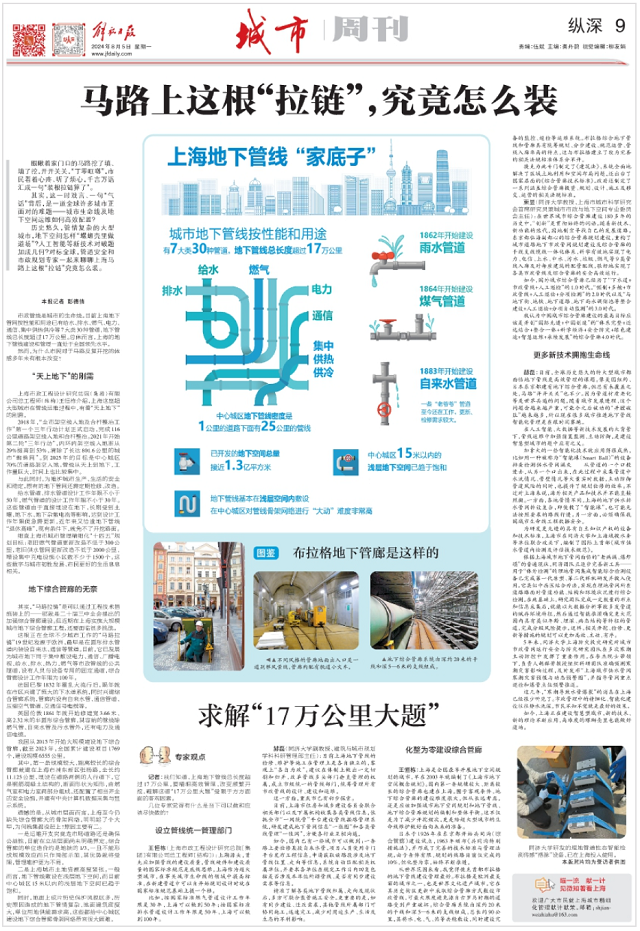 日前,《解放日報》記者訪(fǎng)談了上海市政總院總工程師(結構)王恒棟,就城市地下管線(xiàn)建設和管理方面作深入探討,文章刊發(fā)于8月5日出版的《解放日報》縱深專(zhuān)欄,原標題為《馬路上這根“拉鏈”,究竟怎么裝》。