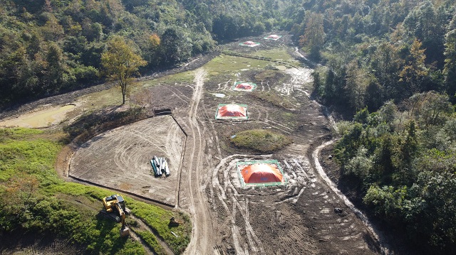 圖為河池市生態(tài)環(huán)境局指導項目實(shí)施方對三鏡巖溶洼地開(kāi)展進(jìn)場(chǎng)道路修建。