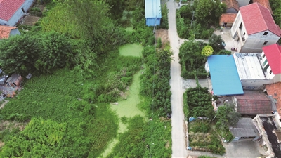 四嶺村8組地勢相對平坦,農舍坐北朝南,呈一字排列,近年來(lái),由于基礎設施建設相對滯后,生活污水都流到村口處約5畝大小的堰塘內,導致雜草叢生、臭味難聞,村民對此處都是避之不及。