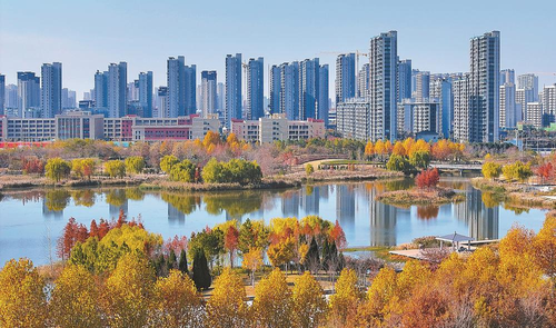 安徽省亳州市不斷推進(jìn)生態(tài)城市建設,圖為高新區鳳尾公園色彩斑斕,景色如畫(huà)。