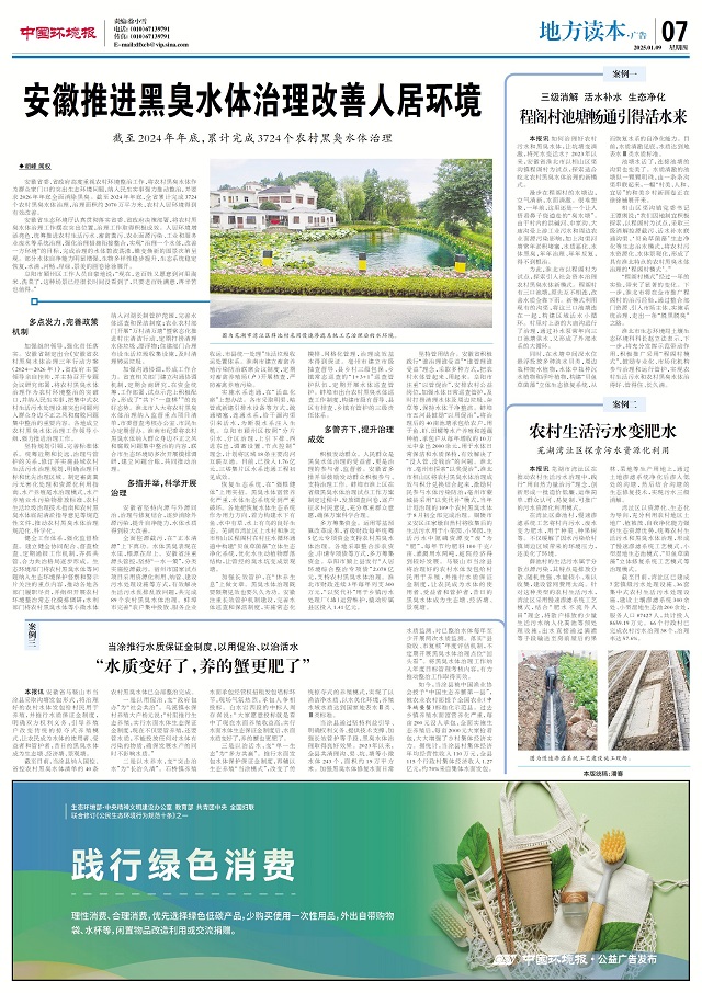 安徽省委、省政府高度重視農村環(huán)境整治工作,將農村黑臭水體作為群眾家門(mén)口的突出生態(tài)環(huán)境問(wèn)題,納入民生實(shí)事強力推動(dòng)整治,并要求2026年年底全面消除黑臭。截至2024年年底,全省累計完成3724個(gè)農村黑臭水體治理,治理面積約2070萬(wàn)平方米,農村人居環(huán)境得到有效改善。