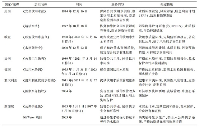 表2主要發(fā)達國家/組織保護水質(zhì)的法案內容和關(guān)鍵措施