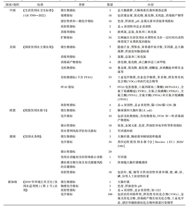 表4中國《生活飲用水衛生標準》(GB5749—2022)與主要發(fā)達國家/組織的對比
