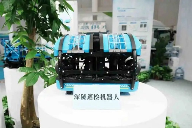 中建三局綠投公司參展的深隧巡檢機器人已應用于武漢大東湖深隧工程,能夠在高水位、多障礙物等復雜環(huán)境下,實(shí)現準確定向、定位、懸停等操作,最大工作水深100米,最長(cháng)檢測距離4.5公里,最大抗流能力1.2米每秒,創(chuàng )新集成聲、光、電磁三位一體檢測系統,對隧道內部厘米級厚度淤積和毫米級結構表面損傷進(jìn)行檢測,檢測精度達90%以上,保障深隧安全穩定運營(yíng)