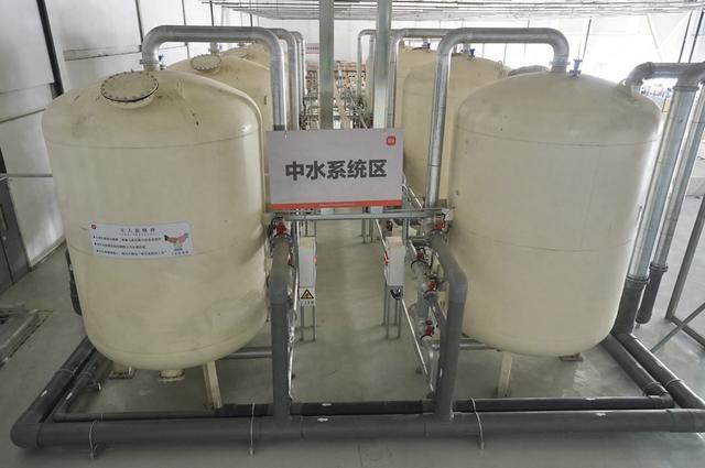 水處理中心是小米汽車(chē)北京工廠(chǎng)污水處理的主要區域,由污水處理站和中水處理站組成。使用后的廢水,經(jīng)過(guò)混凝、斜管沉淀預處理等工藝后進(jìn)入生化處理單元,再通過(guò)水解酸化、接觸氧化工藝,最終滿(mǎn)足北京市污水排放標準。不過(guò),大部分的廢水,并未直接排放,而是經(jīng)過(guò)處理使污水成為高品質(zhì)再生水,再經(jīng)過(guò)純水處理站處理成為純水,回到生產(chǎn)系統中。