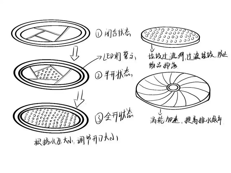 《智雨安行》以前瞻性思維為智慧城市建設中的城市排水難題提供了創(chuàng )新解決方案。該設計從井蓋材質(zhì)、排水技術(shù)及相關(guān)電子傳感技術(shù)入手,突破性地將機械結構與電子傳感技術(shù)融合,提出“可變孔徑”設計理念。該設計使井蓋開(kāi)口能根據實(shí)際水壓自動(dòng)調節大小,靈活應對不同強度降雨;同時(shí)集成LED警示環(huán)與安全傳感器,實(shí)時(shí)監測井蓋狀態(tài),異常時(shí)立即預警,構建起真正“會(huì )思考”的排水系統?!白尦鞘屑词乖跇O端天氣下仍保持‘呼吸’暢通”,在潘一博的設計構想中,井蓋是能感知環(huán)境變化、自主響應的“智能衛士”,同時(shí)滿(mǎn)足排水效率與公共安全雙重需求。
