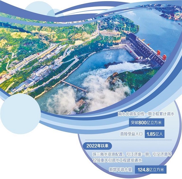 水利部規劃計劃司司長(cháng)張祥偉介紹,目前,南水北調東中線(xiàn)一期工程累計調水突破800億立方米,直接受益人口達1.85億人。2022年以來(lái),珠三角水資源配置、引江濟淮一期、引漢濟渭等12項重大引調水工程建成通水,新增年調水量124.8億立方米;西江大藤峽、新疆大石門(mén)等24座大型水庫建成投用;新開(kāi)工的黃河古賢水利樞紐等31項流域防洪控制性工程和重點(diǎn)水源工程建成后可新增供水能力49億立方米。