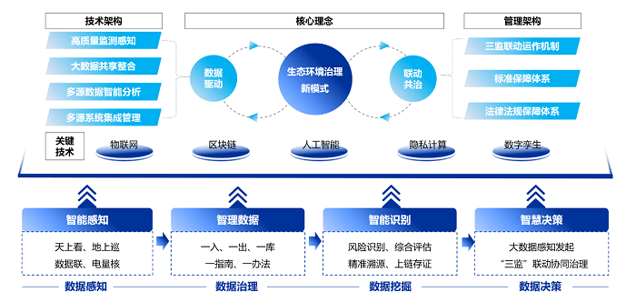 “結合以上多項技術(shù)協(xié)同互補,構建起多層級網(wǎng)絡(luò )協(xié)同感知,產(chǎn)生的多源數據實(shí)時(shí)匯入‘三監聯(lián)動(dòng)’平臺,從而實(shí)現對生態(tài)環(huán)境的全面、實(shí)時(shí)監控?!鄙蛐愣鸾榻B。