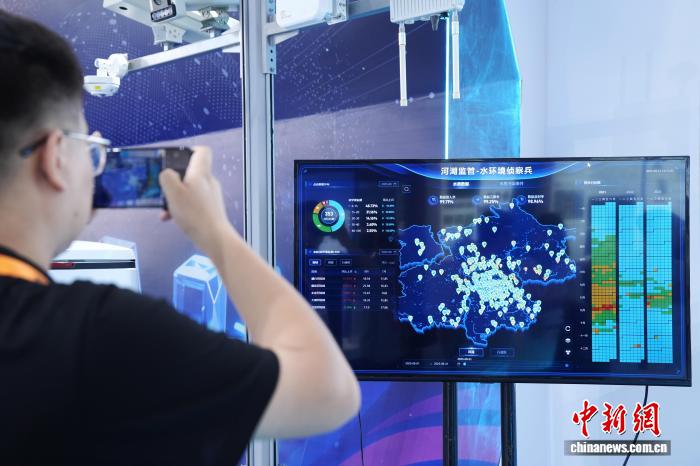 9月11日,在北京舉行的2025年服貿會(huì )北京水務(wù)科技創(chuàng )新展區,觀(guān)眾了解河湖監管系統。據了解,該展區總面積超800平方米,設置濱水空間、數智水務(wù)、健康水業(yè)及水利水電工程建設四大板塊,集中展示北京水務(wù)在科技領(lǐng)域的技術(shù)突破與示范應用。中新社記者張祥毅攝