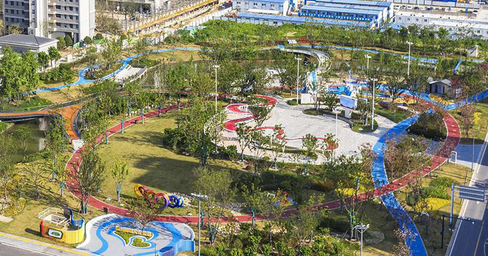 近年來(lái),通呂運河北岸公園、慈善文化公園等綠地項目廣泛采用透水鋪裝,實(shí)現“小雨不積水、大雨不過(guò)夜”。圖為慈善文化公園。卑多敏攝