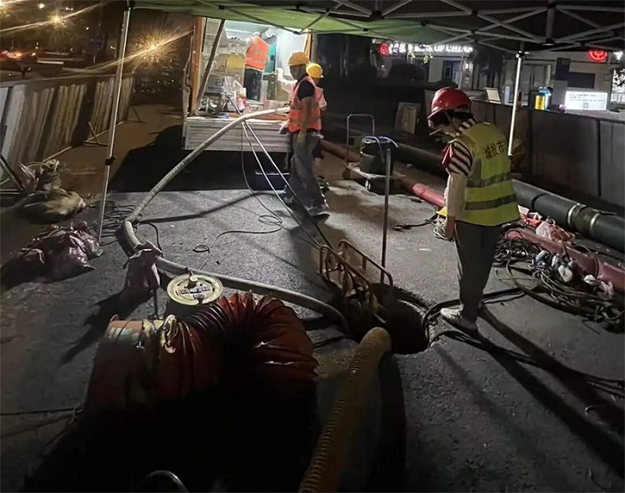 在修復過(guò)程中,項目團隊依托先進(jìn)技術(shù)手段,針對滲漏、破裂、錯口、樹(shù)根侵入等不同類(lèi)型的管道病害,分類(lèi)采取非開(kāi)挖修復技術(shù)為主、局部開(kāi)挖為輔的施工策略。對管徑小于d800的管道,采用局部樹(shù)脂固化法和紫外光固化內襯修復;對大于d800的管道,則使用不銹鋼快速鎖和紫外光固化技術(shù)進(jìn)行加固。尤其在塌陷段,采取局部更換再加整體加固的方式,最大限度減少對路面交通和周邊環(huán)境的影響。