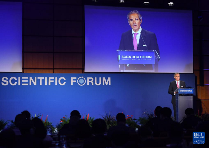 9月16日,在奧地利維也納,國際原子能機構總干事格羅西在“原子用于水資源”科學(xué)論壇上致辭。新華社記者賀燦鈴攝