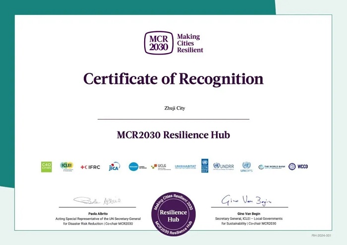2024年,聯(lián)合國減災署公布“世界韌性示范城市”名單,浙江省諸暨市成為繼韓國仁川、菲律賓馬尼拉、韓國蔚山之后,亞太地區第4個(gè)獲此稱(chēng)號的城市,也是全國首個(gè)“世界韌性示范城市”。