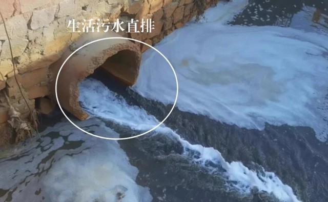 圖為2021年12月5日,中央生態(tài)環(huán)保督察組現場(chǎng)督察發(fā)現,松浦支渠松浦排澇橋下雨水口大量生活污水直排。