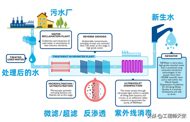 新生水(NEWater)是由解決過(guò)的污水做成的高端中水回用,選用優(yōu)秀的膜分離技術(shù)和紫外線(xiàn)殺菌技術(shù)性開(kāi)展進(jìn)一步凈化處理,使之超潔凈和安全性喝。在水再造加工工藝中,污水先通過(guò)微濾、超濾膜預備處理,除去細微顆粒物和細菌病毒;解決后的水再通過(guò)ro反滲透(RO),ro反滲透基本上能夠除去所有的無(wú)機化合物的殘渣,例如鉀離子等,只容許水分根據,可以這么說(shuō)到這一步水早已很純粹了,這跟我們現在家庭使用的反滲透凈水機是一個(gè)水準;最終進(jìn)到紫外線(xiàn)殺菌環(huán)節,致力于擊殺剩下的病菌,保證水的純凈度。