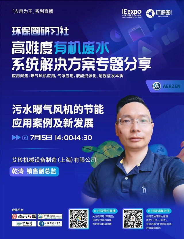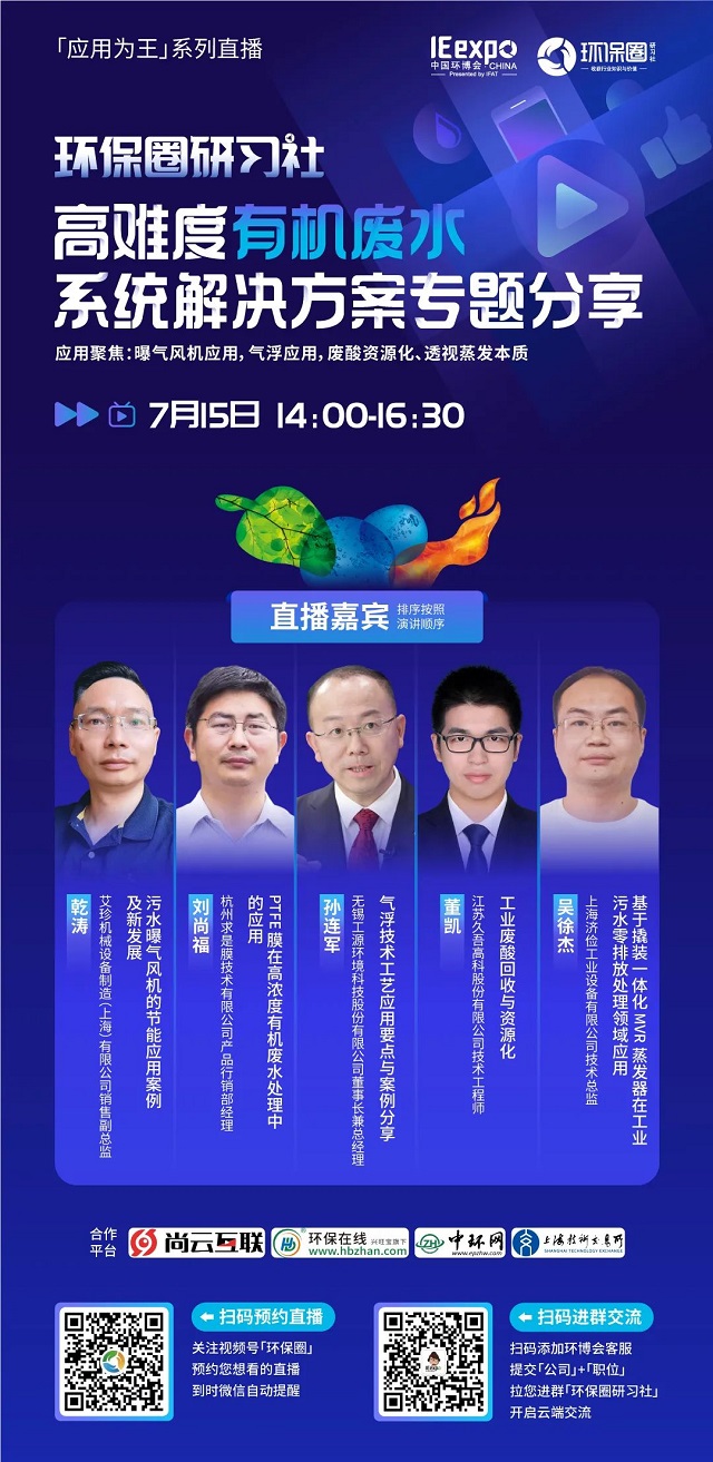 7月15日(星期五)下午14:00-16:30,環(huán)保圈研習社“應用為王”系列直播高難度有機廢水系統解決方案專(zhuān)題分享,有幸邀請到了艾珍機械、求是膜、工源環(huán)境、久吾高科、上海濟儉5家企業(yè)的技術(shù)專(zhuān)家做客直播間,與我們共同探討“水環(huán)境”污染處理問(wèn)題,并為大家帶來(lái)高難度有機廢水的節能處理、資源化利用、零排放處理等相關(guān)技術(shù)及解決方案分享。