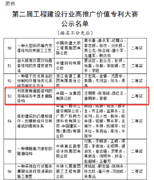 近日,在中國施工企業(yè)管理協(xié)會(huì )舉辦的第二屆工程建設行業(yè)高推廣價(jià)值專(zhuān)利大賽上,中國一冶城建公司推薦的《利用原有道路結構的海綿城市半透水道路結構》專(zhuān)利技術(shù)榮獲二等獎。