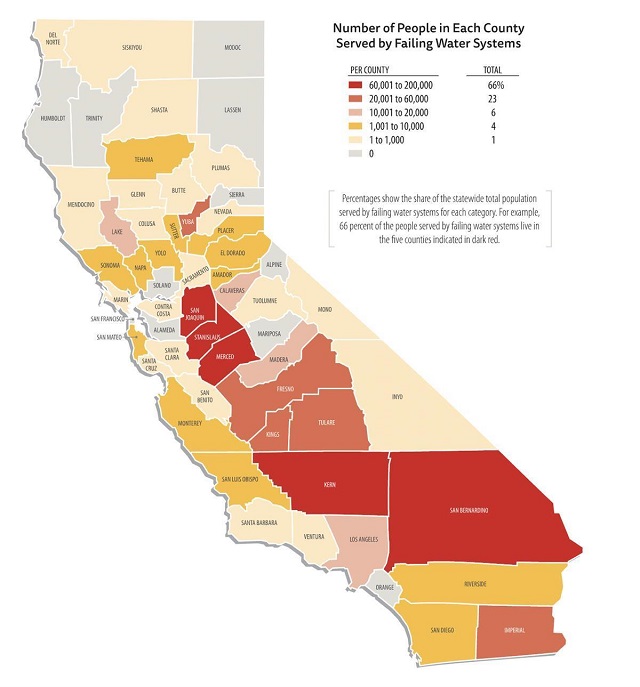據加州水資源控制委員會(huì )調查透露,截至2021年12月,全州已有超過(guò)370套供水系統出現問(wèn)題,導致水質(zhì)不達標,其中三分之二的供水系統卻仍在為貧弱社區供水,受影響居民超過(guò)92萬(wàn)人。
