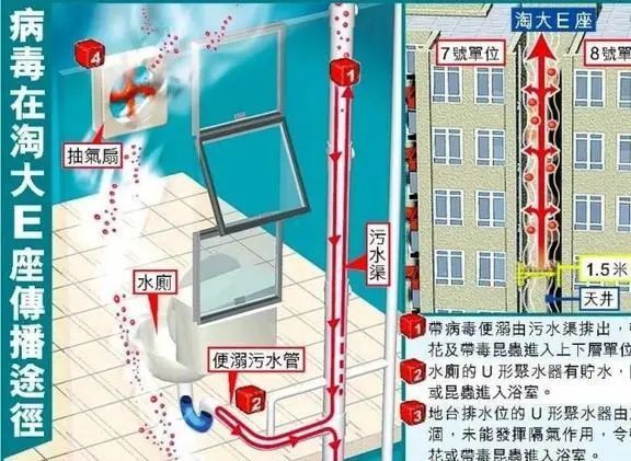 這不得不提起2003年的SARS病毒通過(guò)香港下水道系統造成的超級傳播事件。請看下圖↓
