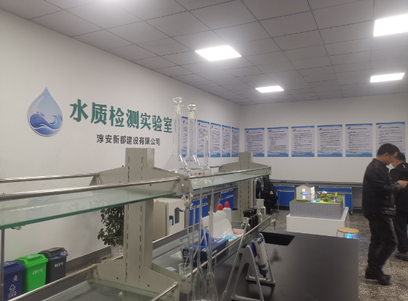 該治水客廳建筑面積近200平方米,一樓為水質(zhì)檢測實(shí)驗室,利用自動(dòng)化監測系統、微型水質(zhì)監測站等,能對PH、COD、氨氮、總磷、總氮、SS等指標進(jìn)行實(shí)時(shí)檢測。今年以來(lái)共檢測水樣228個(gè),分析水質(zhì)數據1600余個(gè),準確、及時(shí)、全面地反映水質(zhì)現狀及發(fā)展趨勢,對污水出水水質(zhì)實(shí)現自我監督的同時(shí)根據水質(zhì)檢測結果對農污終端進(jìn)行針對性調試,做到有的放矢,確保水質(zhì)達標排放,助力武強溪流域水環(huán)境保護。室內精心設計了全市首個(gè)農村污水處理沙盤(pán),全方位動(dòng)態(tài)展示污水來(lái)源、處理工藝流程和尾水的循環(huán)利用,讓參觀(guān)者直觀(guān)地感受到當地農村污水處理流程。