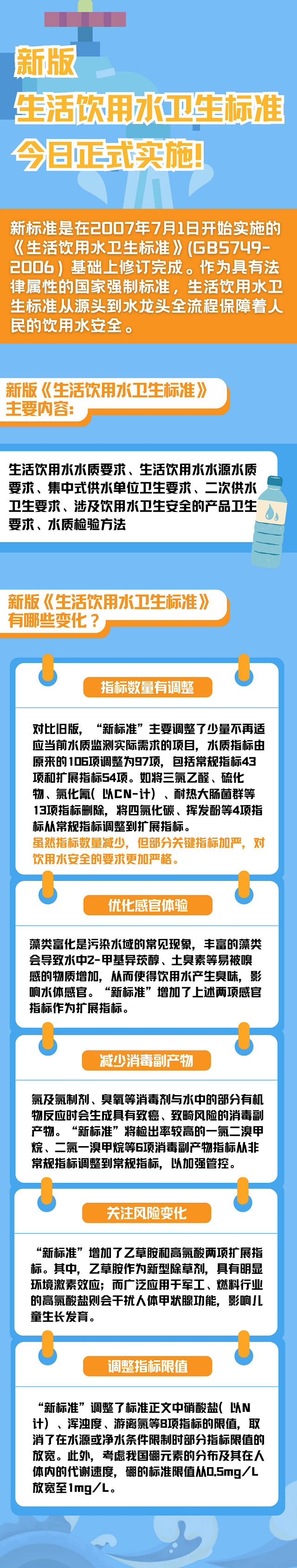 當前位置:首頁(yè) > 國內政策 > 新版生活飲用水衛生標準今日正式實(shí)施