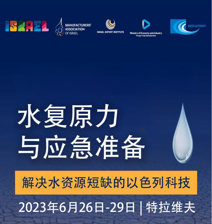 中國城鎮供水排水協(xié)會(huì )受以色列經(jīng)濟與產(chǎn)業(yè)部及駐華使館的邀請于2023年6月26-29日派員參加了在以色列第二大城市特拉維夫舉行的“2023以色列水復原力與應急準備大會(huì )”( the Water resilience & Emergency preparedness event 2023 in Tel Aviv)。本次活動(dòng)是以色列面向國際社會(huì )集中展示其解決水資源短缺以及應對突發(fā)事件保證正常供水方面的技術(shù)的一次活動(dòng)?!八畯驮Α笔侵杆谑褂弥笸ㄟ^(guò)一系列水處理技術(shù)使其恢復到原狀態(tài)的能力,在這個(gè)理念指導下,污水及海水都可以通過(guò)技術(shù)成為水資源,這也是以色列在荒漠國土上生存發(fā)展的技術(shù)保障。