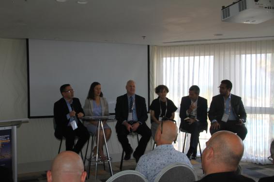 主題報告后由以色列Mekorot工程技術(shù)和戰略規劃副總裁Yossi Yaacoby先生主持了主題為“通過(guò)創(chuàng )新增強韌性”的小組討論,來(lái)自以色列水務(wù)局安全應急和網(wǎng)絡(luò )高級部門(mén)經(jīng)理Danny Lacker先生、以色列創(chuàng )新局初創(chuàng )部門(mén)氣候與健康高級總監Hagit Schwimmer女士、法國國家水工業(yè)與企業(yè)聯(lián)盟(UIE)董事會(huì )蘇伊士企業(yè)風(fēng)險投資總監Jean-Luc Venture先生、巴西國家水務(wù)和衛生局水務(wù)和社會(huì )經(jīng)濟研究主管Felip Tavares先生、美國ICI基金聯(lián)合創(chuàng )始董事總經(jīng)理Gili Elkin女士參加了討論。