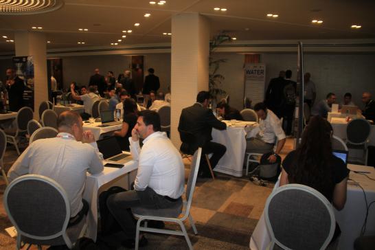 27日下午進(jìn)行了企業(yè)B2B一對一洽談環(huán)節,根據會(huì )議注冊時(shí)參會(huì )嘉賓選擇確定的洽談名單逐一進(jìn)行。參加B2B交流的以色列企業(yè)有以色列最大的水務(wù)公司Mekorot、海水淡化技術(shù)工程公司IDE、空氣制水技術(shù)公司W(wǎng)atergen、智慧水務(wù)公司KANDO、基于人造衛星的管道漏損探測公司ASTERRA、管網(wǎng)漏損檢測及評估公司Aquarius Spectrum、水質(zhì)安全實(shí)時(shí)檢測公司CyWat公司、過(guò)濾技術(shù)公司Amiad、新型生物處理填料公司AqWise、無(wú)線(xiàn)自動(dòng)抄表數據網(wǎng)絡(luò )公司Arad、紫外線(xiàn)消毒技術(shù)公司Atlantium、高質(zhì)量液壓控制閥公司BERMAD、強化生物處理SBP膠囊公司BioCastle、免開(kāi)挖自動(dòng)漏損修復公司Curapipe等。