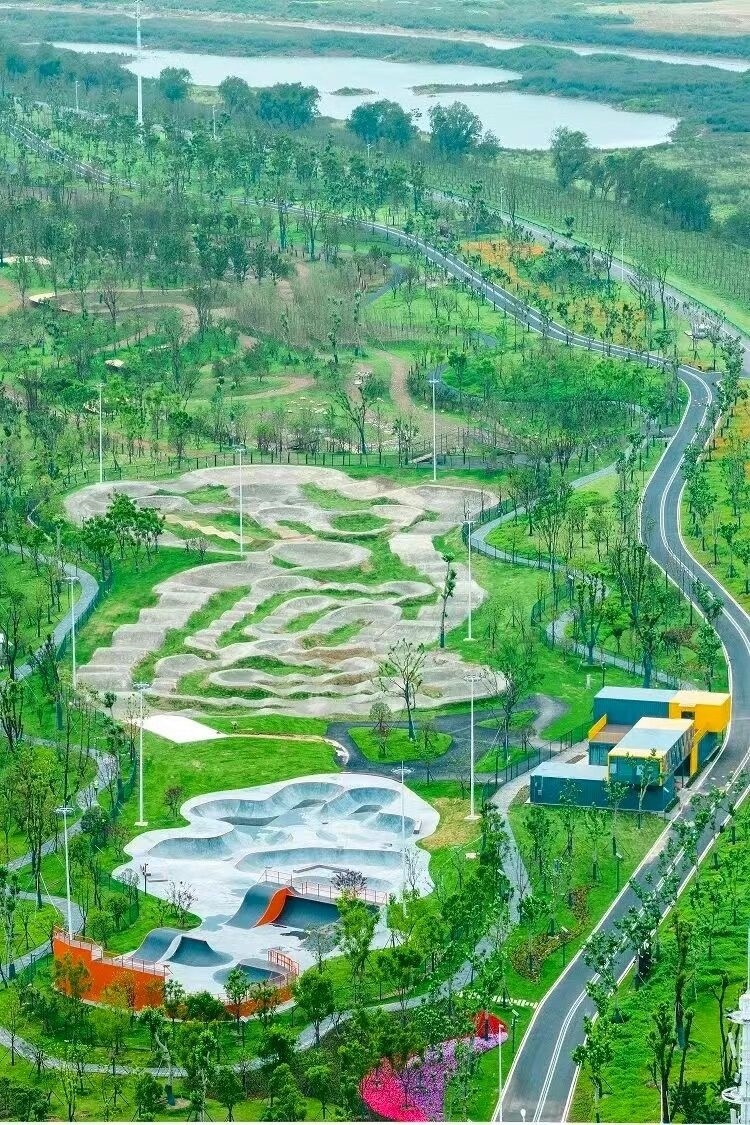 梧桐雨最高點(diǎn)杜鵑溪谷,是結合府河沿岸原有地形高差,由場(chǎng)內渣土“二次利用”堆積的小山。