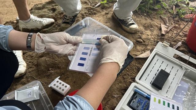 圖為珠江南海局監測與科研中心工作人員進(jìn)行水質(zhì)快檢