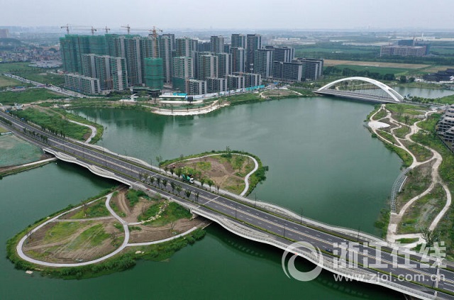 近年來(lái),杭州進(jìn)一步加大海綿城市建設力度。本組圖片為8月15日記者用無(wú)人機鳥(niǎo)瞰杭州錢(qián)塘區東湖防洪調蓄湖配套工程一期,其北岸的濱水空間“樣板段”已基本完工。該項目水域面積約34.5萬(wàn)平方米,陸域面積約29.72萬(wàn)平方米,涵蓋綠地面積約21.8萬(wàn)平方米。公園以生態(tài)建設為核心,用多種植物打造水上森林、浩瀚蘆葦灘等特色景觀(guān),延續生態(tài)野趣的濕地風(fēng)貌,具備水質(zhì)涵養及氣候調節等生態(tài)功能。