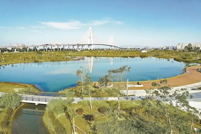 “公園設計時(shí)便考慮到了這一點(diǎn),通過(guò)園內池塘的水流調蓄功能、透水混凝土路面的滲水功能、綠地草坪草溝的凈水功能,能有效解決內澇難題?!鄙穷^市濠江區建設工程代建中心主任張漢標表示,公園內的海綿體系如同“毛細血管”,雨水經(jīng)此進(jìn)入市政管道、排入海水中,從源頭控制雨水徑流,增加末端調蓄空間約2萬(wàn)立方米,達到雨水的滲透、滯留、凈化,實(shí)現“小雨不積水,大雨不內澇”。