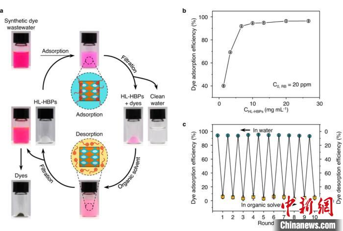 論文通訊作者王樹(shù)濤研究員介紹說(shuō),有機染料是一種常用的色彩添加劑,被廣泛應用于工業(yè)、科研和日常生活的方方面面。有數據表明,全球有機染料的產(chǎn)量達到70萬(wàn)噸/年,其中近10%—15%被排放到工業(yè)和家庭廢水中,已成為水污染的重要源頭,對生態(tài)環(huán)境和公眾健康構成威脅。