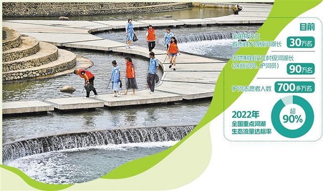 一級抓一級,層層抓落實(shí)。數據顯示,目前全國共設立省市縣鄉四級河湖長(cháng)30萬(wàn)名,因地制宜設立村級河湖長(cháng)(含巡河員、護河員)90萬(wàn)名。通過(guò)推進(jìn)河湖長(cháng)制進(jìn)企業(yè)、進(jìn)校園、進(jìn)社區、進(jìn)農村,護河志愿者人數達700多萬(wàn)名,全社會(huì )關(guān)心參與河湖管理保護的氛圍日益濃厚。