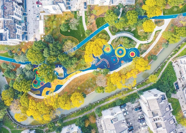越城區快閣苑小區里的“海綿城市”